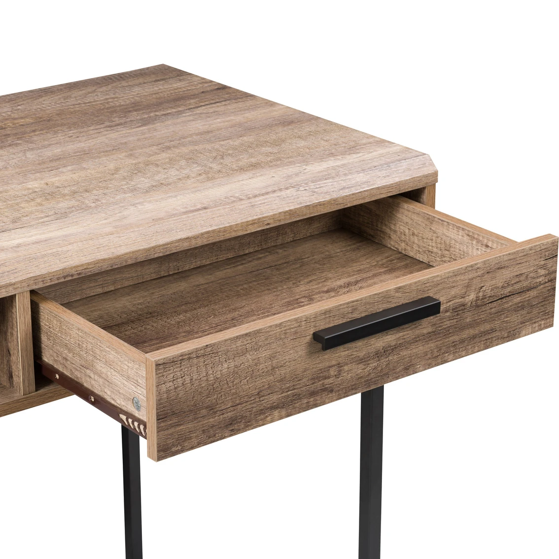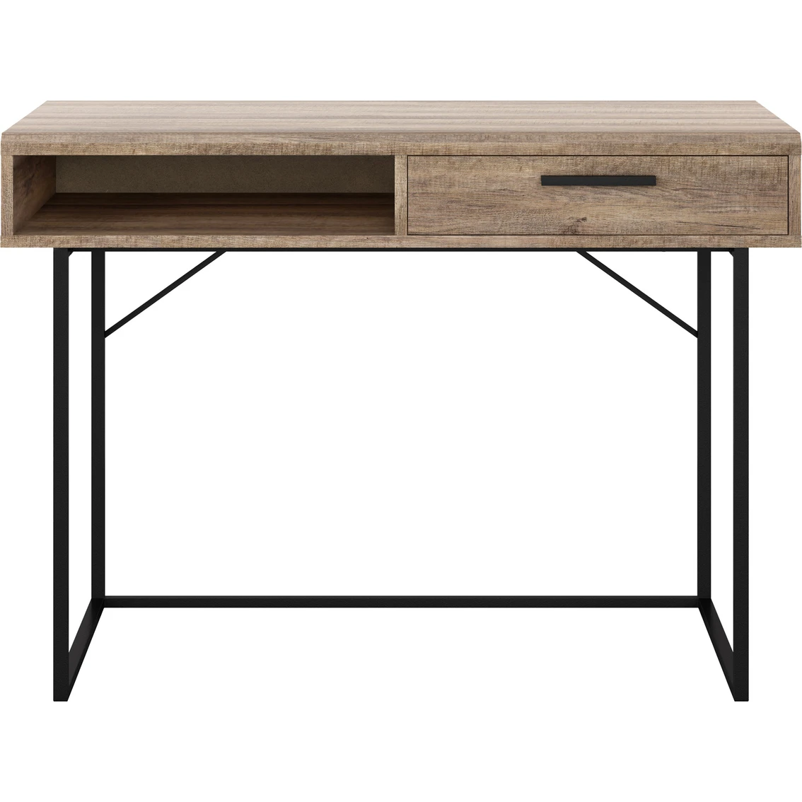 With clean lines and sturdy black metal legs, this Fort Worth desk from CorLiving will add a modern farmhouse feel to any office. Featuring one storage drawer and an open storage cubby to help keep you organized.