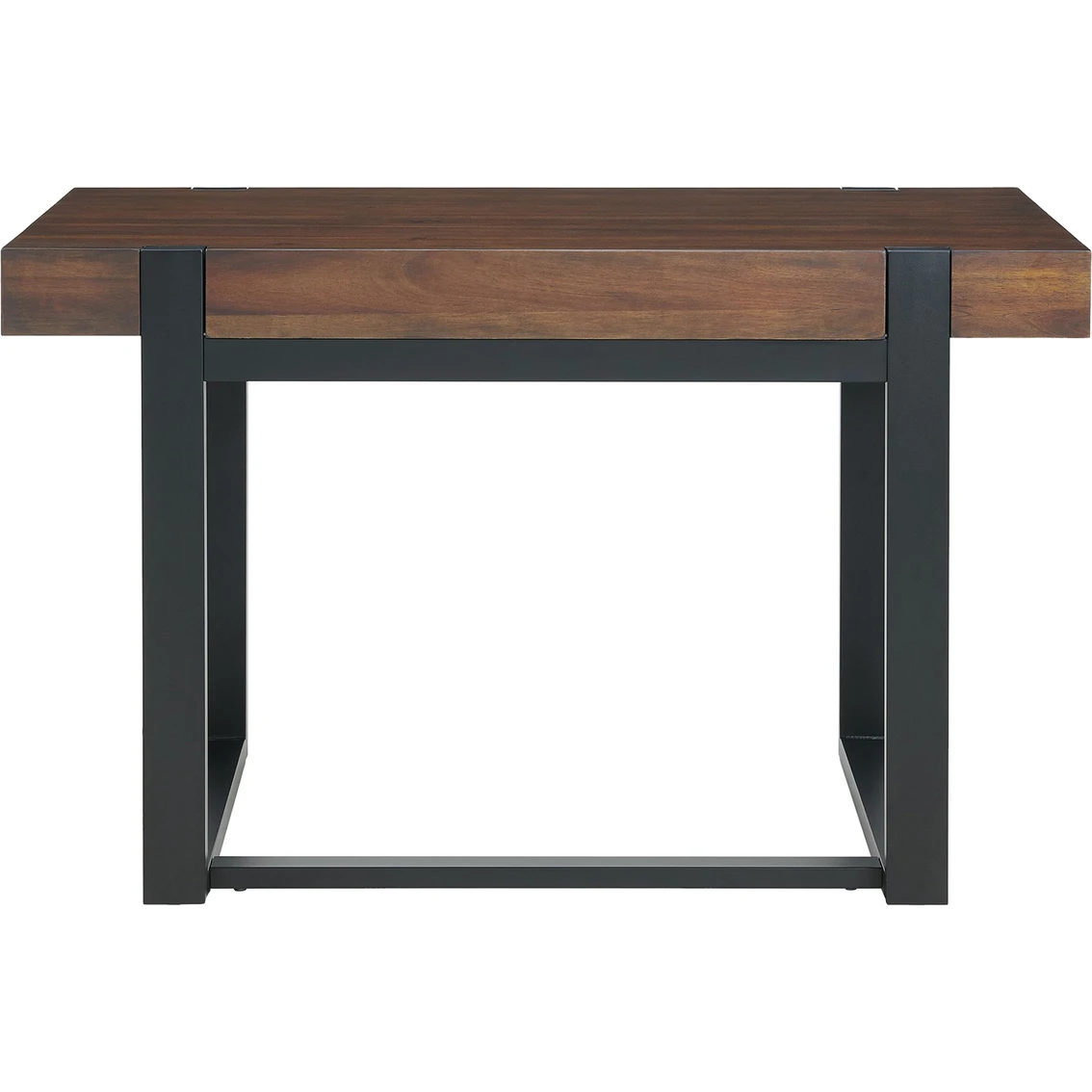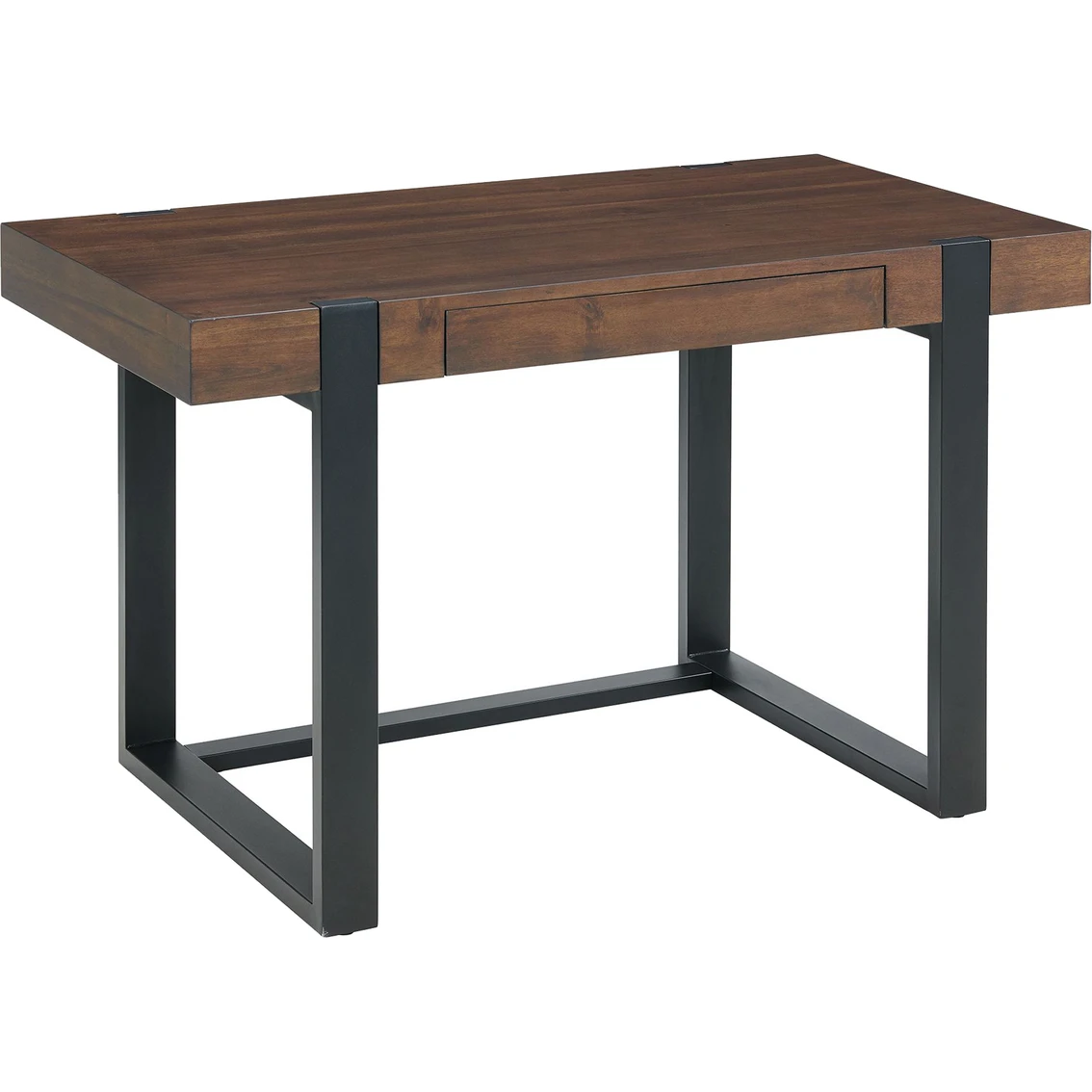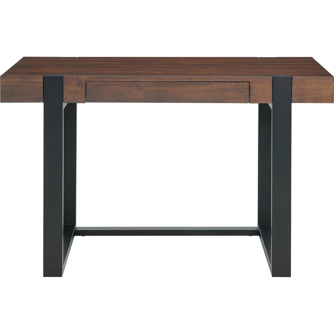 The Elements Moly Desk speaks for itself. Crafted in Acacia wood, MDF and Metal. The top of desk showcases beautiful cherry finish with wood grain work, giving the desk a rustic texture. The desk is paired with a metal sled base which brings the desk grand stability and industrial style fitting for various home office aesthetics. At center is one spacious desk with ball bearing glides for easy open and close. Store all of your important office documents and supplies in this drawer for easy access. Some Assembly Required (Tools Included). Model: A.12520.DK.