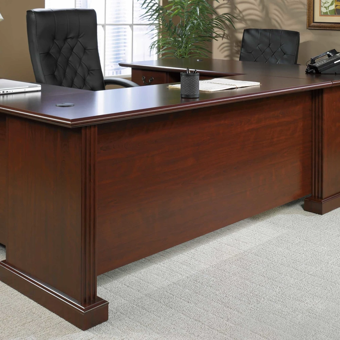 Give yourself a little extra work space with this U-shaped connector kit from Sauder’s Heritage Hill collection. It features a grommet hole and cord clips for electrical cord management along with a long lower shelf for additional storage. This Classic Cherry finished connector kit connects to executive desk 109843 and 48-in. return kit 109848 to create a u-shaped configuration. With all this extra space, you’ll never want to leave the office. Model: 109872.