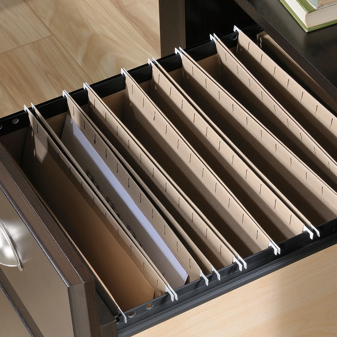 - File drawer with full extension slides holds letter-size hanging files to keep your important documents organized