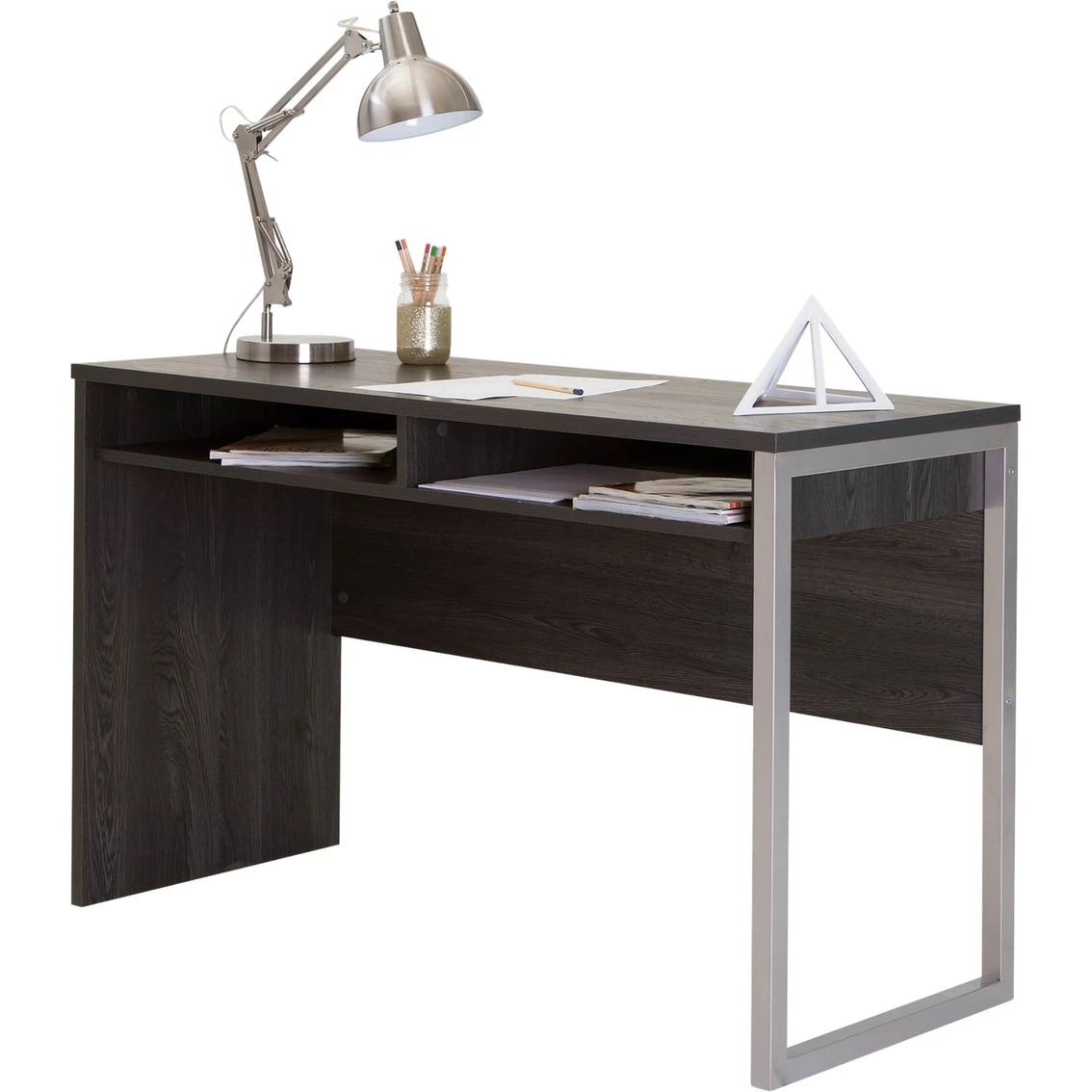 Part of the South Shore Interface collection, this elegant desk will please the biggest fans of contemporary style furniture. A beautiful metal leg support with light-colored finish give this desk a modern look that’s one of the most sought after – exactly what you need to enhance your room. The 2 open storage spaces can hold a tablet, a laptop and books to make this the ideal piece for your home office, living room or bedroom.
