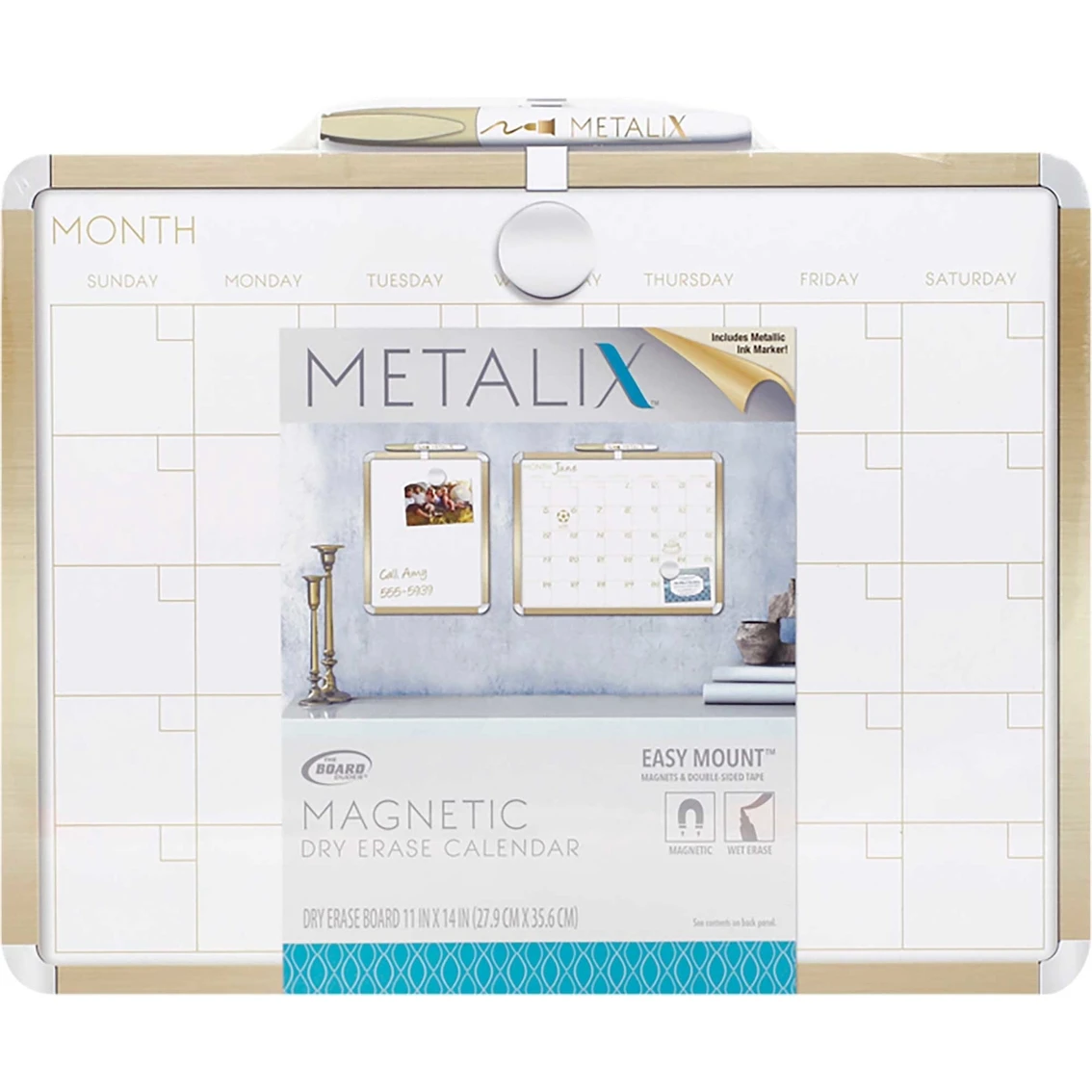 The Board Dudes Dry Erase Calendar Board 11 x 14 in. with assorted color borders includes marker and magnet. Easy mount includes magnets and 2-sided tape pads. Border color may vary. Model: FGJ04.